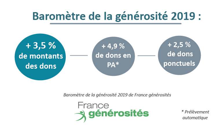 - + 3,5 % de montants de dons en 2019 par rapport à 2018