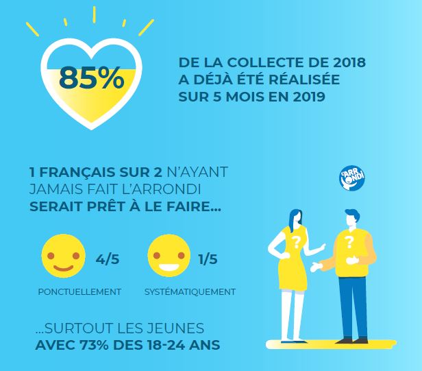 De fait 1 français sur 2, n’ayant jamais fait l’arrondi solidaire serait prêt à le faire, dont 41 % ponctuellement et 9 % systématiquement. En extrapolant ces données, ce serait donc 25 millions de français qui seraient prêt à réaliser dans la durée des actions d’arrondis solidaires.